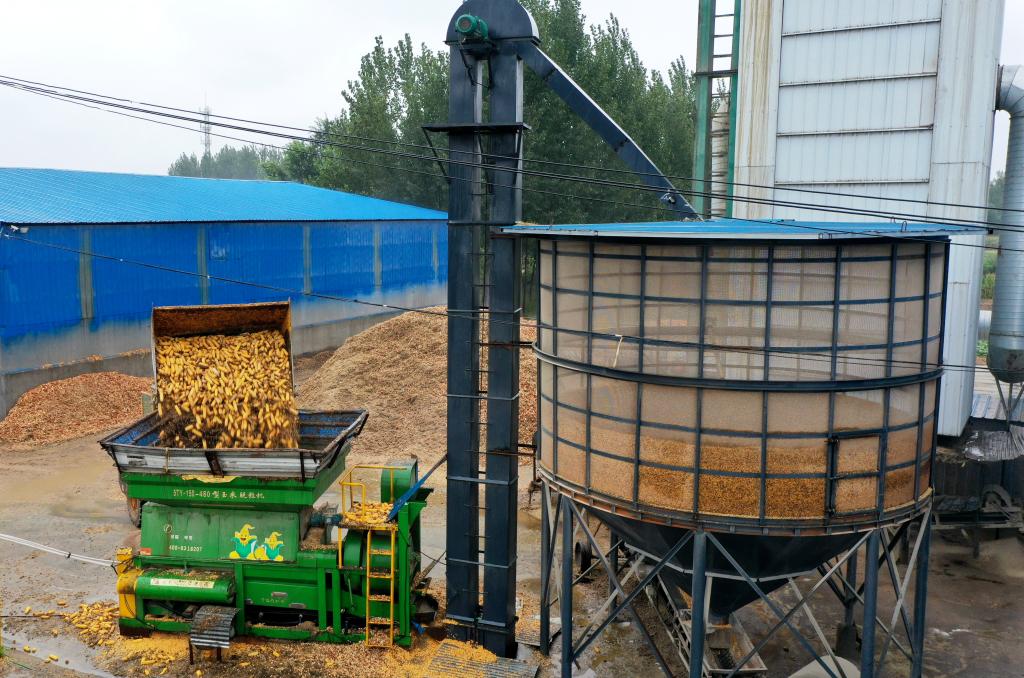2025年10月10日拍照的河北省衡水市阜城县古乡镇一家粮食烘干企业作业现场(无人机相片)。新华社发(崔贤飞 摄)